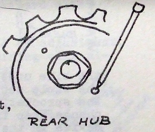 One last point about gears is the selector cable. In both internal and external gears the cable should not have any slack. This is particularly true of the internal gears. The cable must be in slight tension, even in first gear (I once had to fix a three speed hub gear that only had two operable gears. I was all set to rip the whole thing apart, but I had a flash of inspiration and studied the linkage operation while slowly cranking by hand. I found that the selector movement was travelling half way just to take up the slack in the cable. One minute’s work and I was a “wizard” with bikes.”)