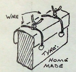 If it becomes necessary to make your own brake shoes – keep one tip in mind. You will need a very sharp knife to cut a tyre. On its own this will probably not be sufficient; you should mix up a bit of soap and water to make a lubricant. Thoroughly wet the knife and rubber and you will be able to cut it without any trouble at all. I should also point out that you should not try to cut the tread of steel belted radial tyre, as it would have a number of layers of hardened steel wire impregnated into the rubber. Look for a conventional cross ply or textile radial, and it will save both your knife and your temper. (These types of tyre have become rare as hens teeth, try used conveyor belting as discussed in the article on replacing the sole on a pair of sandals, located in the “craft” section.)