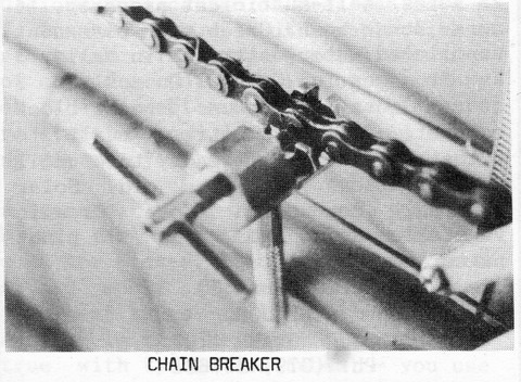 To take a chain off you need a chain breaker. Line up the punch on the connecting pin, turn the tommy bar and out pops the pin. Installation is a reversal of this procedure.