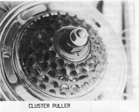 To remove the cluster first place the puller into the cluster splines. Then put the nut onto the axle and run it down until it is just about tight on the puller. You can then use a spanner to turn the puller anticlockwise. The nut stops the puller from coming off the splines. As soon as the puller rotates a bit, slacken off the nut a fraction and repeat again.