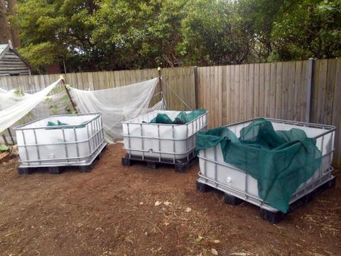 I recently attended a ‘permablitz’ at a friend of mine’s place, and due to my previous experience with wicking beds, she asked me to oversee the construction of three of them being constructed from IBCs (Intermediate Bulk Containers). So of course I said yes!