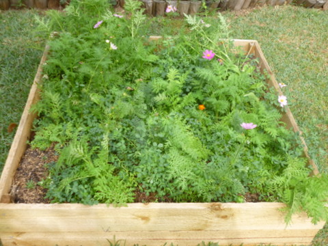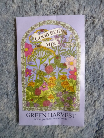 To make things easy for myself I got hold of a packet of Good Bug seed mix from Green Harvest and broadcast most of it on the top of the 1.2 metre x 1.2 metre bed as evenly as I could, then covered it with some cocopeat. After that it was just a case of keeping it moist until the seeds germinated. By summer I will have a lovely insectary bed, full of nectar-containing flowers helping me to pull in those pollinators and predators.