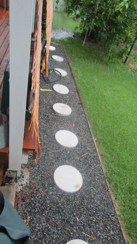 So we now have a dual purpose path/drainage trench and from the rain we have had it seems to work well, but I waiting for a big rain to see how it performs then!