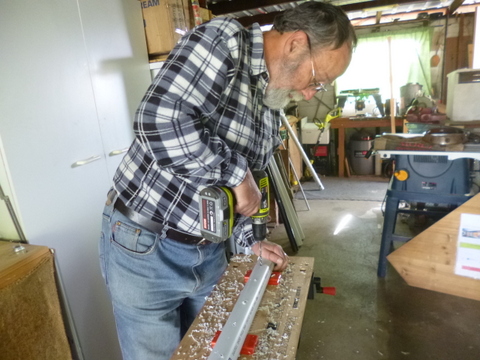 With the holes in place in two of the one metre lengths I glued an end cap on one end and a 90⁰ elbow onto the other of each one, using the blue PVC plumber’s glue. I then cut the third one metre length of 50mm pipe in half and slid half into the other side of the 90⁰ elbow giving two L-shaped sections. The idea was that the pipe with the holes would sit along the bottom of the tub horizontally and water would flow in through the vertical section of pipe.