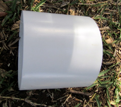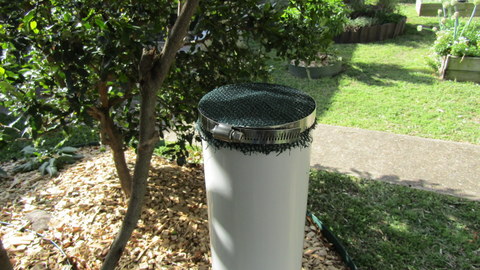 Add in a bit of blue glue to hold it together and a bit of shade cloth or equivalent mesh and a 105 – 127mm hose clamp (at $3.45). Admittedly, if you do not intend to put any water into the DPR which has solids which may clog the holes in the Deep Pipe waterer, such as veggie peelings or food residue from plates rinsed, the shade cloth and clamp and not required.