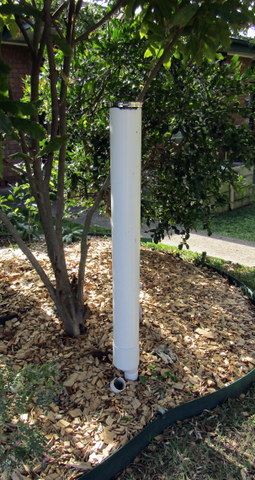 Here in Sydney, (plus most of NSW and indeed almost all of Aus) we are in drought, so I have been spending some of my time working out ways to maximise our water use. One way I have come up with allows us to use greywater from the house to deep water out perennials, working with our previously installed low tech, low cost but highly efficient deep pipe waterers. Information on how to make and install deep pipe waterers is available elsewhere on this site and also on our YouTube channel.